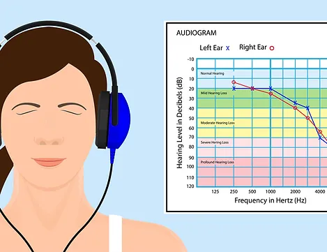 An audiogram displays the findings of a hearing test. An audiogram is a graph that depicts the quietest sounds that a person can detect at various pitches or frequencies. The softer the noises the person can hear, the closer the marks are to the top of the graph. The location of the patient’s results on the audiogram indicates the degree of hearing loss. The audiogram below depicts the various degrees of hearing loss.