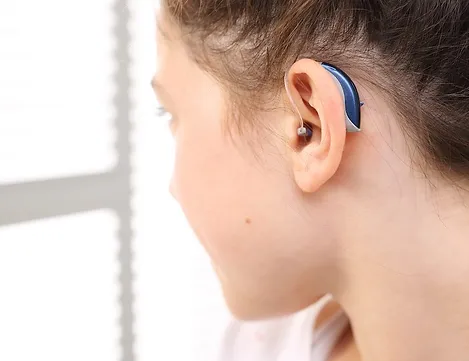 BTE hearing aids are worn behind the ear and loop over the top of the ear. The hearing aid detects sound, amplifies it, and transmits it to an ear mould that goes within your ear canal. This type of hearing aid is suitable for nearly all types of hearing loss and for persons of all ages. A BTE hearing aid is the most obvious and visible type of hearing aid, while some newer models are smaller, streamlined, and scarcely detectable. Can provide higher amplification than other types of hearing aids.